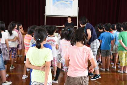 2週間後の「音楽の夕べ」で歌う「にじ」を歌いました。繰り返しのところを英語で歌います。何度も教室で練習したのでうまく歌えました。