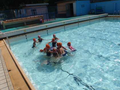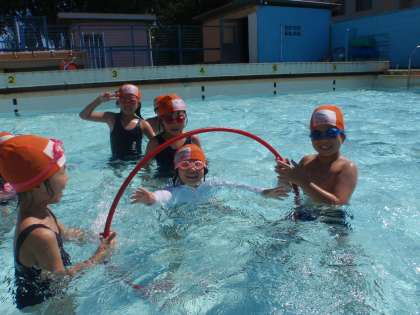 プールの水温も30度まで上がりました。プールサイドが熱くなるほどいい天気でした。プールに入るのが気持ちよく感じました。輪を使って体を伸ばして浮く練習をしました。