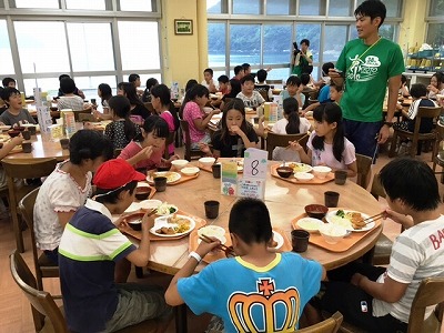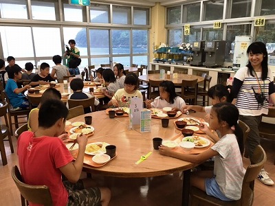 入浴と食事の時間が入れかわり,予定よりも早めの夕食を食べています。