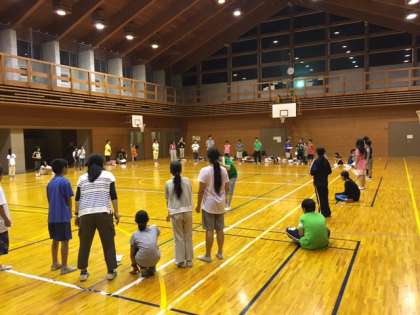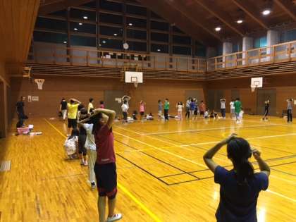 トビ—ホールという体育館で,3日目のキャンプファイヤーの練習をしました。