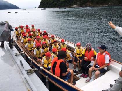 安全のためのライフジャケットを着用し,舟に乗りました。
