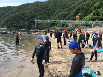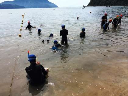 午前にカヌー&砂の造形の活動をしたグループは,午後スノーケリングをしています。