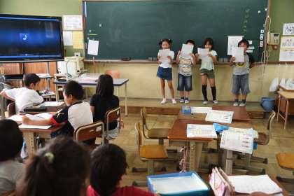 「ドレミの歌」を歌いました。そしてオリジナルの「ドレミの歌」を作りました。グループで考えた歌は楽しく大きな声で歌いました。