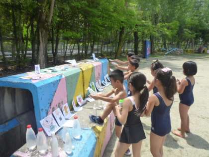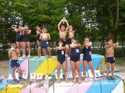 雨で延期が続いていましたが,今日待ちに待った水遊びができました。