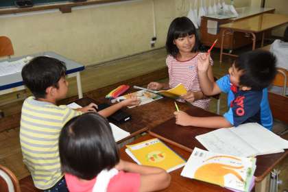 教科書の「ミリーの素敵な帽子」を読んで,クイズを作りました。考えてもらうことが楽しくて,たくさん作れます。学級全員に考えてもらったり,グループで考えてもらったりしました。