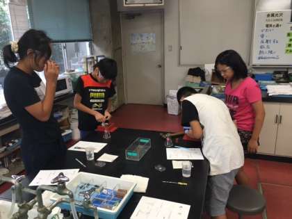 金属をマラカイトという鉱石から取り出す実験をしています。