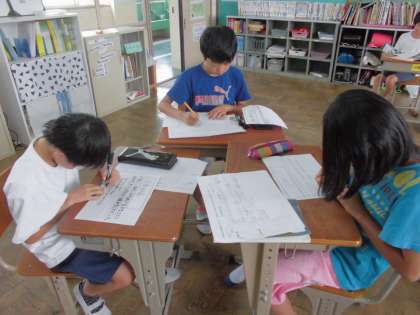 国語の学習では,係活動の活動報告書を書きすすめています。
