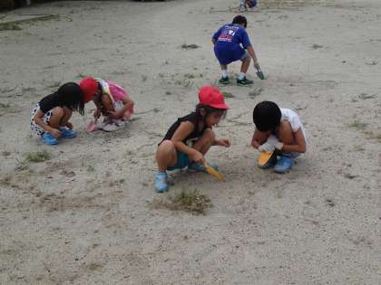 親子草引きをしました。運動場はたくさんの草が生えていたので,2年生の割り当てられた場所を,一生懸命に抜きました。