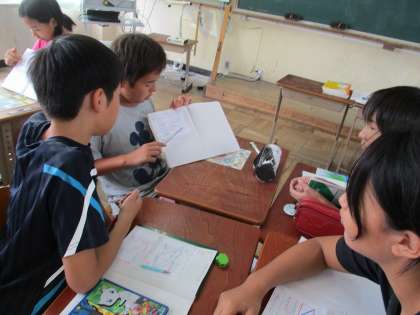 今日は,タブレットを使って拡大と縮小について学習した後,大きさは違うが形は同じ図形を調べる活動をしました。じょうぎや分度器,中には図形を重ねるなど,それぞれが工夫して調べ,ノートにまとめることができました。思った以上にたくさんの考えを出してくれたので,グループで交流をして,色々な考え方にふれました。そしてその後は,出てきた考え方をみんなで説明していく活動をしました。説明する力がついてきましたし,聞いている側も質問や気付いたことをどんどん出せるようになってきました。素晴らしかったです。