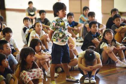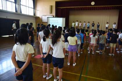 5年生の二の北タイムを見ました。若狭の海に宿泊学習に行ったときの様子が分かりました。しっかり聞いて,感想も伝えることができました。