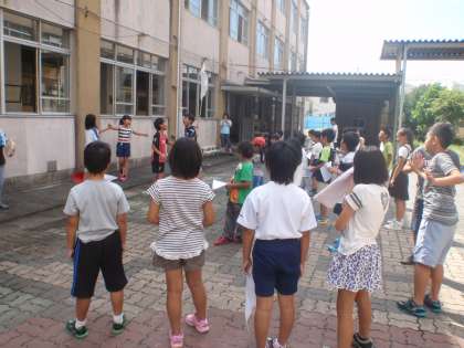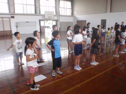 運動会の応援練習が始まりました。2年生も大きな声を出して,存在をアピールしていました。赤組も白組も,初めての練習とは思えないくらいみんな気合いが入っていました。