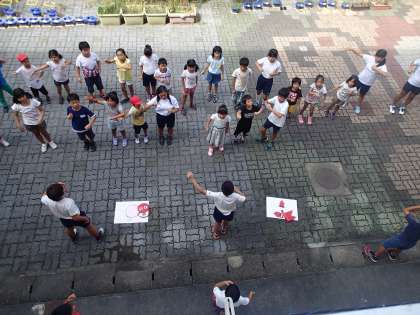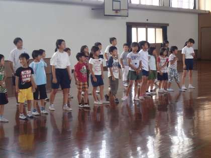 昼休みに最後の応援練習をしました。みんな声がよく出ていました。運動会まで練習はありませんが,今すぐ運動会でも大丈夫なくらい元気な声を出している2年生でした。