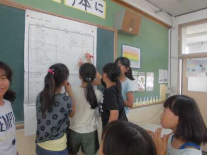 5年生の教室では,全校ダンスと得点係の人たちが活動しました。