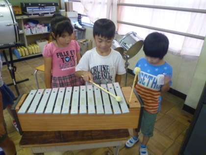 音楽室で「きらきらぼし」の合奏をしました。