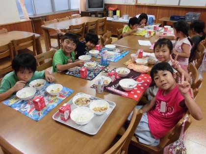 食に関する学習の後は,みんなでランチルームで給食を食べました。