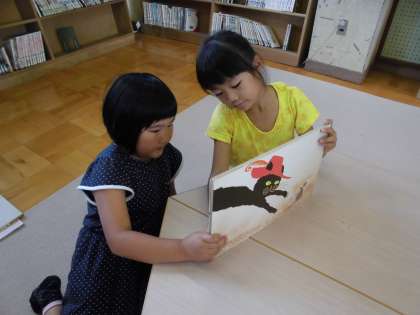 長靴をはいた猫のお話は,みんな知っていましたが,図書係りさんの読み聞かせには夢中になって聞いていました。毎週木曜日の楽しみになっています。