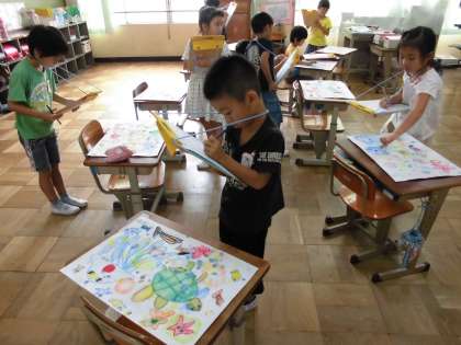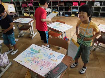 友達の作品をみて「笑った顔がいいね。」や「細かくかけているね。」など,しっかりと感想が言えました。