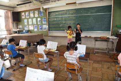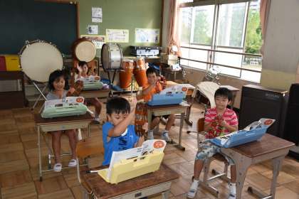 「山のポルカ」を鍵盤ハーモニカで演奏しました。それに,タンバリンとカスタネットの打楽器も加えました。合奏することを楽しんでいました。