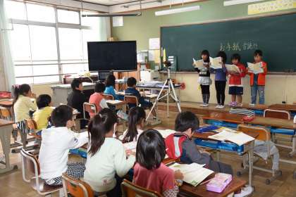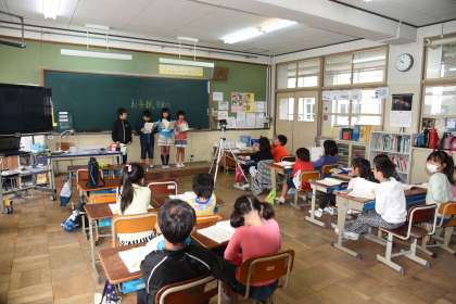 国語科で学習した「お手紙」を,音読劇にしました。登場する,かえるくん,がまがえるくん,かたつむりくん,の気持ちを読み取って,心を込めて表現していました。どのグループもとても上手でした。