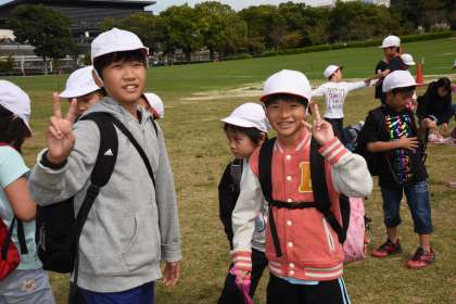 全校遠足で,梅小路公園へ行きました。仲良しグループで,オリエンテーリングをしました。2年生もポイントを探したり,クイズを解いたりして活躍していました。