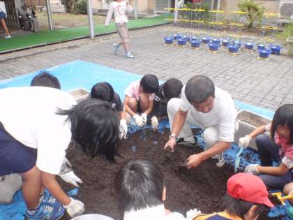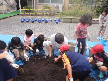 プランターの土の手入れをしました。新しい花を育てるために活動しました。2年生から,4名が参加しました。上級生に負けないくらい活躍していました。