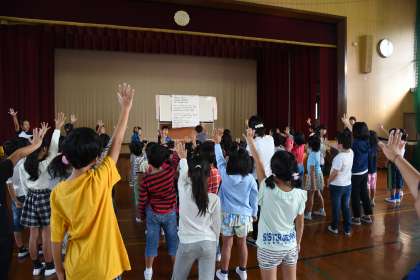 音楽集会がありました。「ビリーブ」と「365日の紙飛行機」を歌いました。教室で何度も歌ってきたので,上手に歌えました。