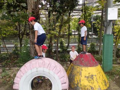 体育の時間に,「跳んだりはねたり」をしてきました。学校にある道具を使って,跳んだりはねたりしました。たくさん跳びました。