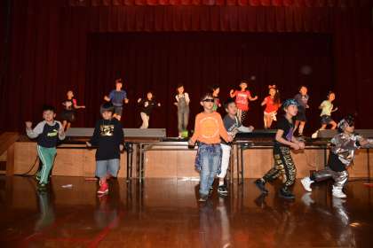 ダンスを披露しました。1曲目は「ABC」の歌に合わせてダンスの振り付けを考えました。最初から大きな手拍子をしてもらったので,調子よく踊れました。