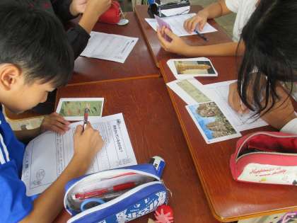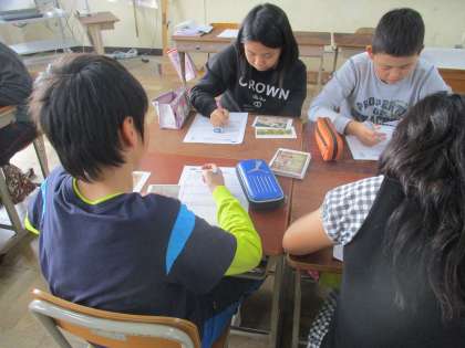 今日の図工の鑑賞は,いつもとちがって「アート・カード」を使った学習をしました。始め30枚ほどの絵画や写真をじっくりと見て,その後に自分のお気に入りのカードを選び,気付いたことや感じたことをまとめていきました。色や線,背景や塗り方など色々な角度からかいていきました。最後は,鑑賞版「神経衰弱」をして楽しみました。