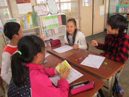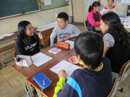 今日はイングリッシュ・デイ。帯学習の時間には,オールイングリッシュで,テーマトークをしました。好きな食べ物や好きなテレビ番組などをテーマにしました。英語で言えない表現はジャスチャーを必死で取り入れるなど,頑張って英語を話していました。とても楽しかったですね。