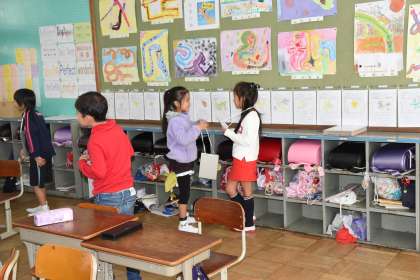 算数の時間に学習した九九を,たくさんの先生に聞いてもらいます。そのために,先生にお願いする話し方を練習しました。九九を正しく言えることは大切ですが,聞いてもらうときの接し方も勉強しています。