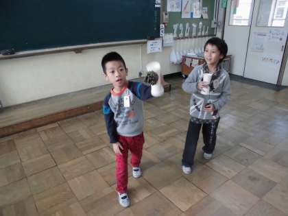 秋の工作,とても楽しんでいます。