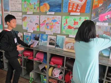 昨日はタブレットを使って,自分の一日を紹介するスライドを作りました。まず紹介したい「get up」「go to bed」「eat lunch」などのカードを選びます。次に,カメラ機能を使って,選んだカードを表すジェスチャーを考えて,写真を撮り,時刻を表すスライドと合わせます。最後は,言い方を確認し,スライドに吹き込み完成です。子どもたちは,タブレットの使い方にはすっかり慣れ,とても意欲的に作成することができました。ジャスチャーをする楽しさを実感してきたように感じました。
