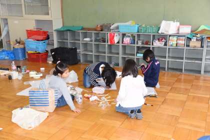 生活科で,おもちゃを作っています。大道具や小道具を工夫して作っています。思い思いのおもちゃができてきました。