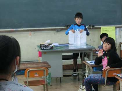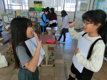 外国語活動の時間で学習した表現を使って,友達とやり取りを楽しみながら,クイズ大会をしました。