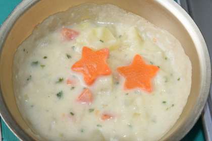 給食のシチューに,幸せニンジンが入っていました。星形でした。2個入っているのもありました。いつもよりたくさんの幸せニンジンに大喜びでした。