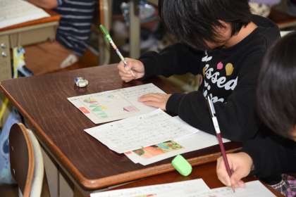 国語科で取り組んできた「お話の作者になろう」ができました。挿絵とともに,清書して完成です。ひとりひとりの作品を読み合うのが楽しみです。