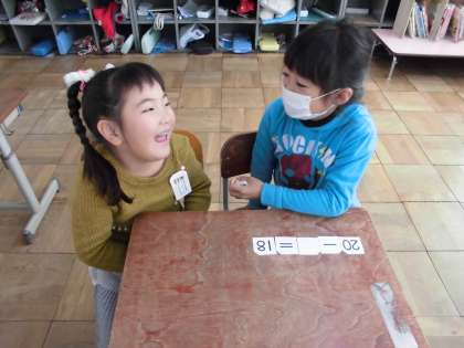 今日は「ひきざん(2)」のまとめの学習で,「すうじあてゲーム」をしました。