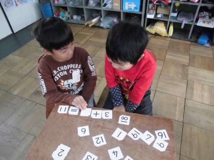 難しい問題を作って,「うーーーん。」と悩む友達を,にこにこしながら見ています。