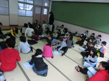 花背山の家宿泊学習に向け,向島二の丸小学校4年生の友達と合同学習を行いました。