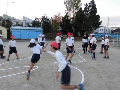 鬼ごっこで体を温め,リレーを行いました。