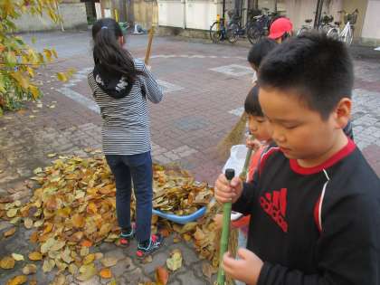 今週から,なかよしグループで「落ち葉拾い」をしています。6年生の子どもたちが中心になって声をかけ,たくさんの落ち葉を拾い,学校中がとてもきれいになっています。
