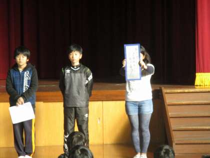 月曜日,人権朝会で標語の発表会がありました。6年生の代表2名とも,落ち着いて,1つ1つの言葉を大切に,伝えることができました。