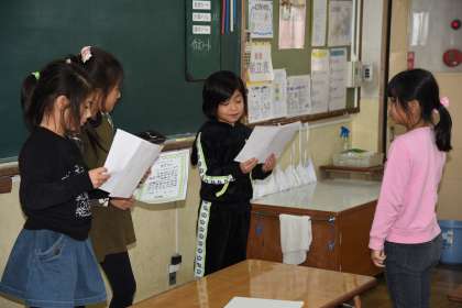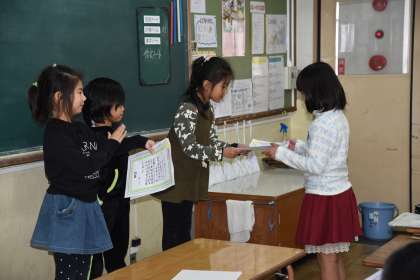 クイズ係から出題された問題の全問正解者が表彰されました。とても難題でしたが見事に正解していました。来週も出題されます。がんばりましょう。