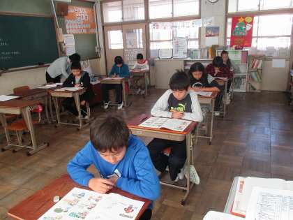 今週外国語の授業では,英語ジュニア検定を受けました。絵を見て考える問題に,子どもたちはしっかりと最後まで聞き,1問1問解いていくことができました。普段の頑張りが出ていました。