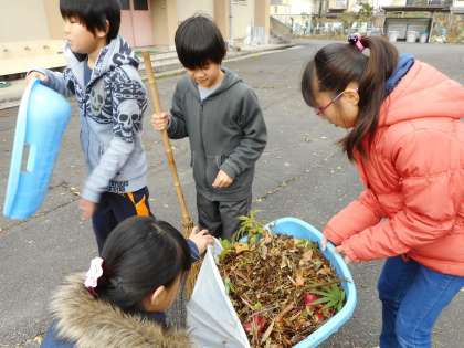 今日は,5・6年生で学校の落ち葉掃きを行いました。