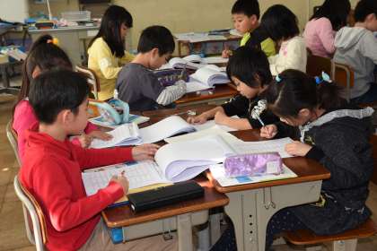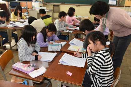 冬休みの宿題をグループで確認しました。計算問題は自分達で丸付けをしました。冬休みもしっかりと勉強ができていました。