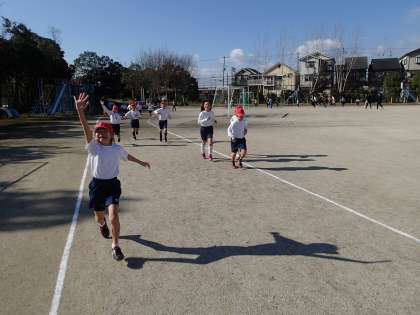 持久走大会に向けて,中間ランニングが始まりました。2年生も上級生に負けない勢いで走りました。寒さを忘れるほど,がんばって走りました。