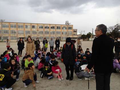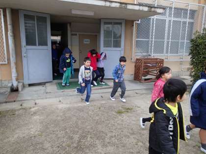 大地震が起こったことを想定して,避難訓練をしました。しっかりと放送を聞いて,テキパキと行動することができました。お家の方への引き渡しの練習もできました。