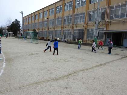 毎週,水曜日と金曜日はみんな遊びの日です。今日は,みんなでドッジボールをしました。途中から2年生も入って,大勢でドッジボールできたので楽しんでいました。
